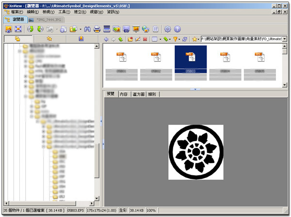 開啟XnView 後,可以讀看eps、ai、psd 檔,其他一般常見的jpg、bmp、gif...等都可以在這裡讀取,做管理就像ACDSee 般。