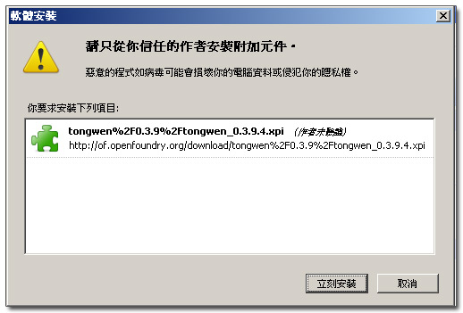 立刻安裝,等它安裝完成後從新啟動firefox,就可以使用這個功能。