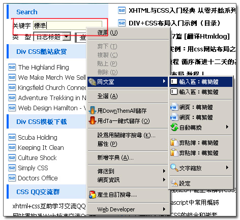 在網頁按下右鍵,在選單中選擇 同文堂-->網頁:轉繁體