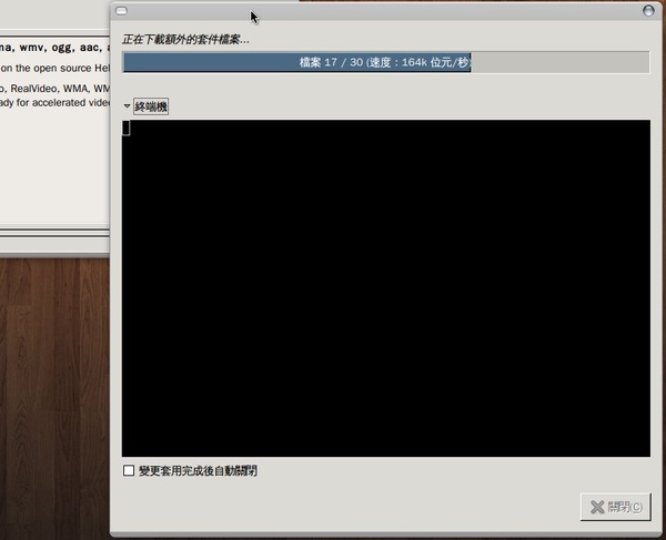 開始自動安裝,同時它也會自動搜尋下載額外需要安裝的套件。