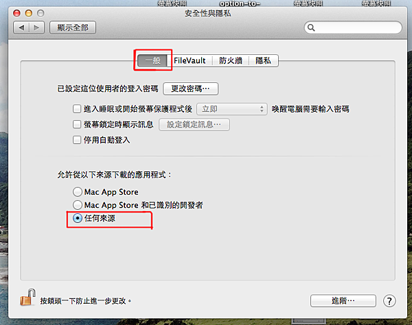 自從Mac OSX Mountain Lion 開始後Mac就加入防止使用者安裝有危險未經認證的App,因此在安裝經由非App Store下載的軟體就會出現「來自未識別的開發者」的警告,更不讓你安裝使用該軟體。解決的方法只要打開系統偏好設定,找到安全性與隱私的設定,在「一般」頁籤中,將設定改為「任何來源」就可以安裝程式。若是剛有被封鎖的程式,也可以在畫面上看到是否允許該程式執行的訊息,允許該程式執行。建議的設定值還是設定為「Mac App Store和已識別的開發者」比較安全。